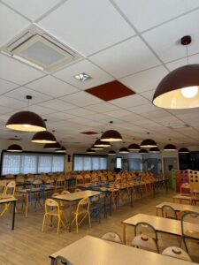 Climatisation d’une cantine scolaire par un VRV  DAIKIN avec 10 cassettes pour l’ensemble du réfectoire